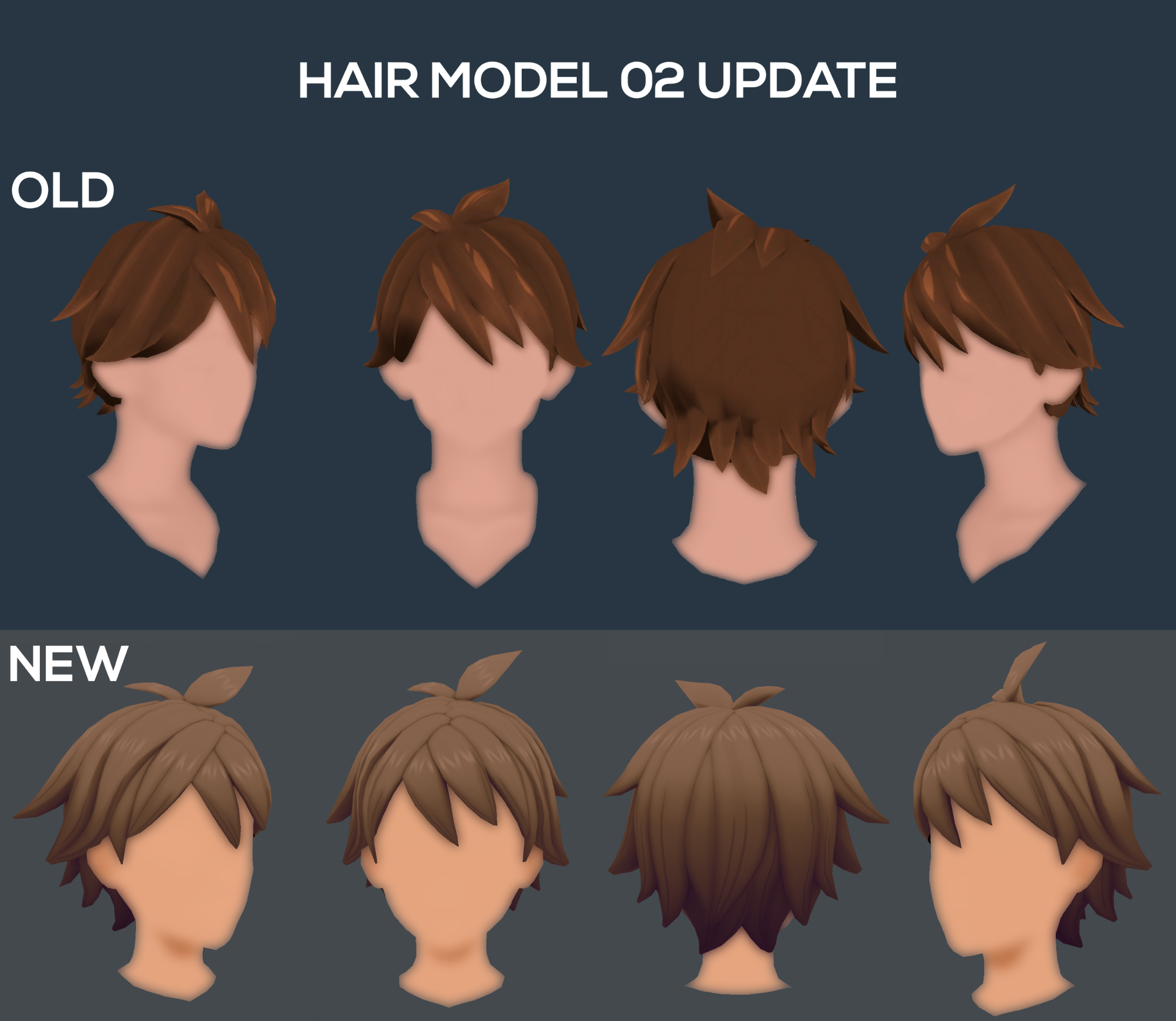 Here’s a look at the updated hair without any other facial features: